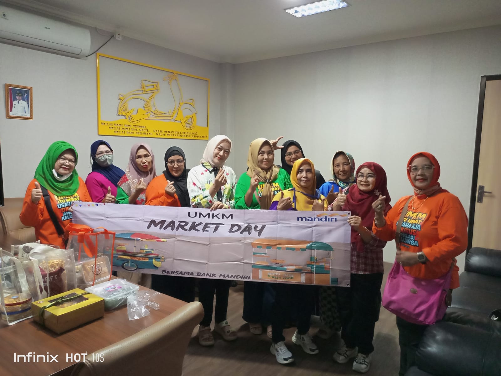 Kunjungan yang penuh keakraban tersebut diakhiri dengan sesi foto bersama Bunda Dini Noviani dan seluruh anggota UMKM Market Day Ciputat Timur. (Wirawan)